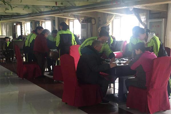 学生们陪老人捡牌 |