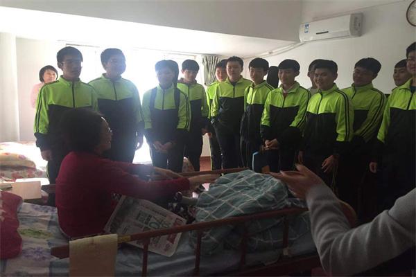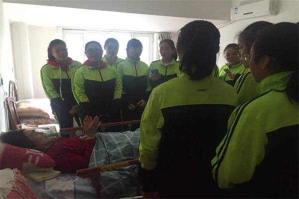 学生们到房间看望老人并为其唱歌送祝福