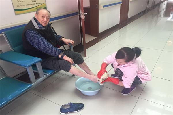 护理员给老人洗脚