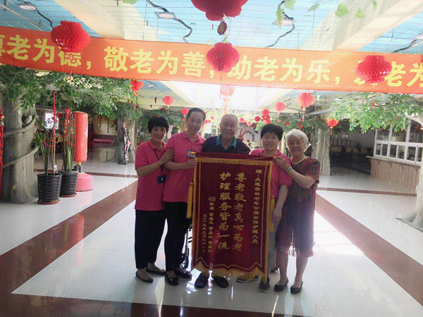 现如今,各大城市的养老院高、中、低档成立了很多家,可是要想真正做到为老年人服务,让老年人满意的养老机构还是屈指可数。做为大连唯一一家国家AAAAA级养老服务体系认证企业,杏林老年公寓,我们每一位员工为了老人的衣食住行,健康乃至心理健康做的无微不至,让每一位老人都能感受到杏林养老这个大家庭的温馨场所,工作人员每天爸爸妈妈的叫着,老人们感受到无比的暖心,比自己的儿女还孝心,我们所作出的就是六心服务,让老年人能够健康快乐的安享晚年,说的好,不如老人的口碑好,住在杏林养老428房间的老爸爸和老妈妈非常喜欢这里的服务和环境,他们夫妻住了将近三年,护理员尽心尽力的照顾,老夫妻非常感动,让儿女帮忙做一面锦旗,送给护理员,表示感谢,感谢护理员的精心护理,更感谢杏林养老能够培养出优秀的护理团队。