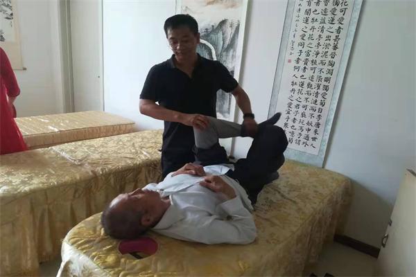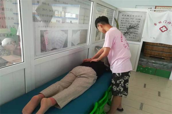 大连大学医学院郑教授为老人按摩去疼痛