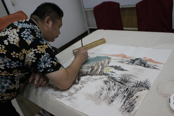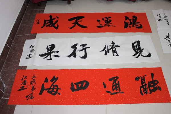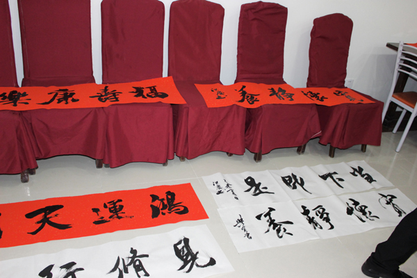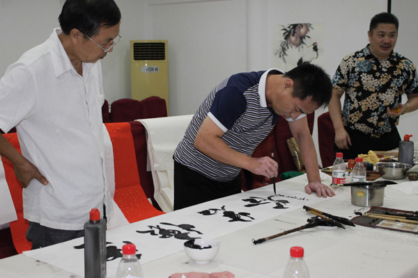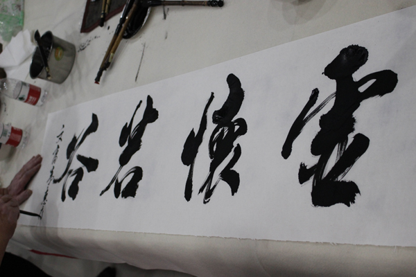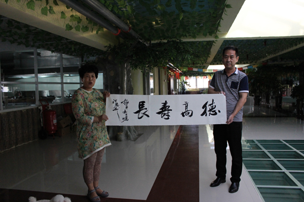 辽宁省省级书画大师亲自来大连天基权杏林老年公寓泼墨题字