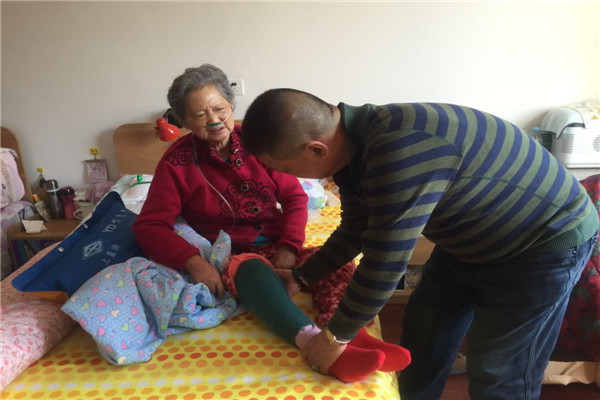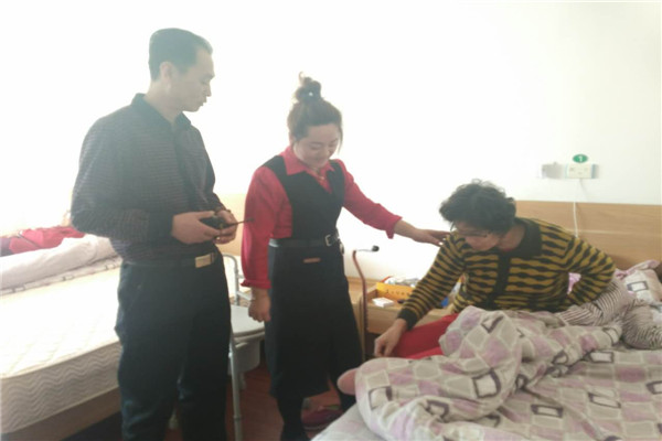 大连杏林老年公寓陈总和员工到房间看望老人