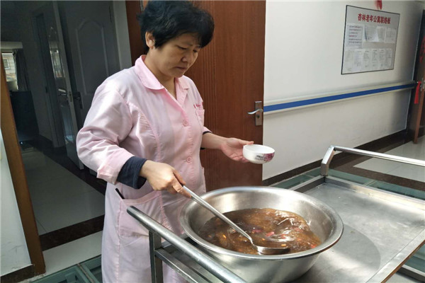 | 大连杏林老人公寓为老人熬制姜汤御寒 |