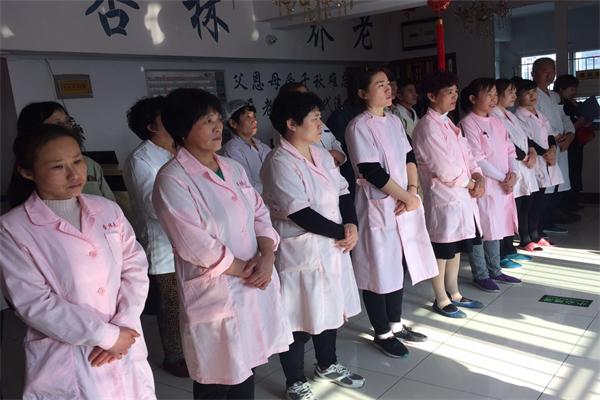 大连养老院杏林老年公寓每周周一早上八点员工例会,今天照常召开,全员参加。例会主要是总结上周的工作,安排这周的重点,通过例会了解工作的问题,及时改善。本周的工作重点是抓安全,抓环境卫生,认真照顾老人的生活起居。陈总经理还特别强调了团队的凝聚力和包容心,更重要的是要注重自身的健康,只有自己健康了,才能把老人照顾好。大连养老院杏林老年公寓继续推展上周的工作方针,把杏林养老院打造成一个无烟养老院,给老人们提供一个无烟环境。杏林老年公寓全体员工将怀揣一颗爱心把我们的老人照顾好,照顾舒服舒心。会后全体员工继续着我们早上的五行健身操活动,同时也带动了越来越多的老人们的参与,愿我们的老人们身体越来越好,在养老院开心的度过每一天。