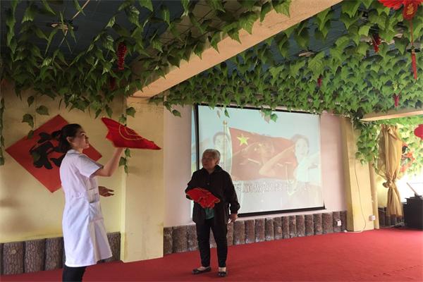 带领老人们转手帕、唱歌 |