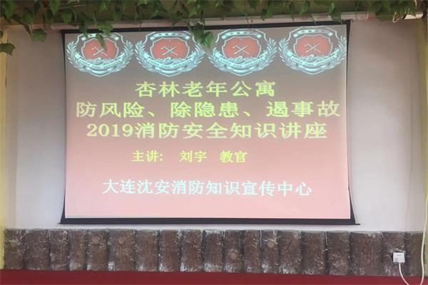 消防安全是一个不可忽视的问题,它不仅是一个企业命脉,也关系到每一个人,每一个家庭的安全。所以,我们每一个人都要了解消防知识,把风险降到最低,消除安全隐患,遏制火灾事故的发生。今天,大连沈安消防知识宣传中心的刘教官来到我们杏林老年公寓给我们全体人员包括老人做“防风险、除隐患、遏事故2019消防安全知识讲座”。这次讲座主要通过一些实例为我们讲述了我们身边的火灾隐患所在,怎么去预防这些隐患的发生,火灾对个人及家庭、企业以及社会的危害。消防安全关系着你我他,是不可以忽视的,我们要从身边的小事做起,消除家庭、企业、社会的火灾隐患,避免火灾危害的产生。