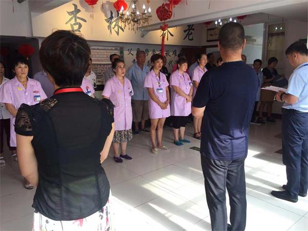 今天是2019年8月5日,星期一。早上八点,杏林老年公寓还和以往一样召开例会。这次例会各部门领导职员全员出席。这次会议由两位院长主持,董事长出席会议。主要是针对通过上周的查房和反馈,对不足的地方进行改进,布置本周的工作重点。目前,老年公寓的入住老人越来越多,作为护理员一定要把服务搞上去,不能松懈,前台、后勤、护理部各个部门的工作都要做好,保证老人的生活质量,尤其是护理人员,要对老人做到“五服”、“六心”的服务。“五服”就是文明服务、微笑服务、细心服务、亲情服务、感恩服务;“六心”就是爱心、耐心、细心、贴心、热心、责任心。食堂方面一定要注意食品的新鲜,一定要让老人吃好,吃饱。各部门一起努力,把杏林老年公寓的服务做得最好,让老人在杏林老年公寓度过幸福的晚年。