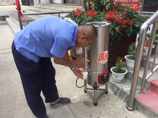 保安师傅为老人打绿豆水