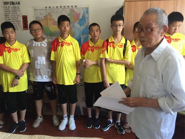 到房间慰问老人,老人也给孩子送上祝福,还和孩子分享抗美援朝的事迹