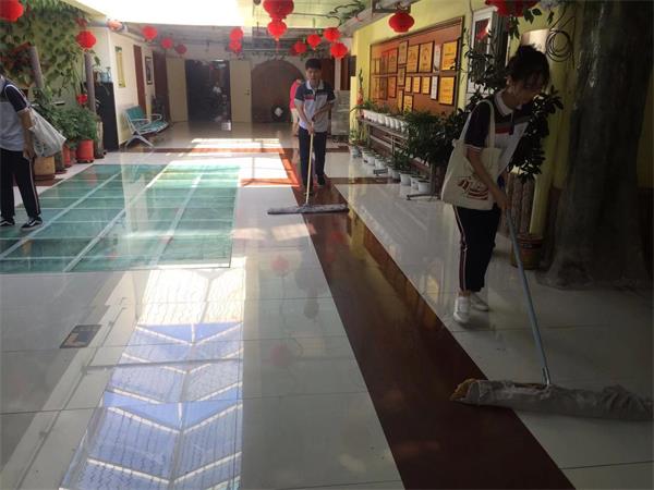 学员帮助保洁拖地收拾卫生 |