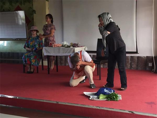 老人们开心的看着表演
