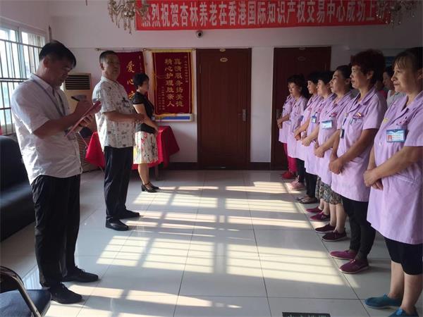 今天是2019年9月9日,星期一。早上八点,杏林老年公寓还和以往一样召开例会。这次例会各部门领导职员全员出席。这次会议由两位院长主持,董事长参加会议。首先由董事长讲话:1、搞好服务,要做到超值服务,各部门各层次落实反馈,真心真意服务好老人;2、安全,各班做好巡岗排查,房间内的水电,厨房的食品安全都要保证;3、发挥杏林老年公寓的优良传统,每天早上给老人送上一杯白开水,天气凉了,给老人熬制姜汤水,御寒防止感冒,让每个老人都能健康幸福;再由院长对环境卫生做了重点强调,本周主抓环境卫生和服务,让养老院的环境更上一层楼,让家人放心,让老人在杏林老年公寓安享晚年。