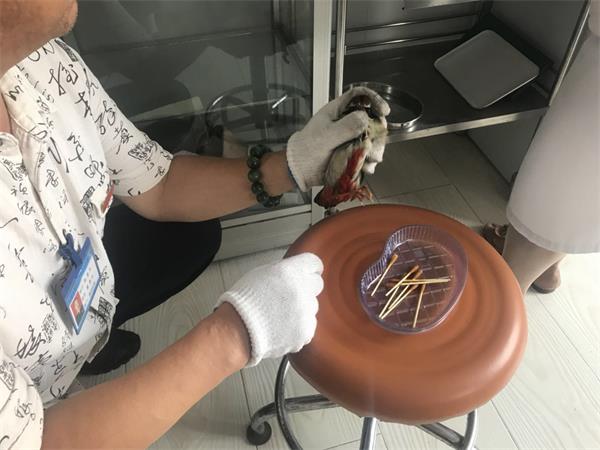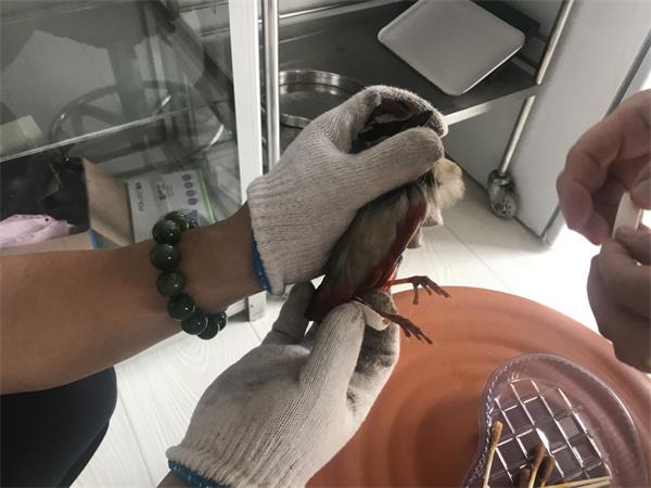 陈善军是杏林养老产业发展(大连)有限公司董事长,同时也担任大连野生动植物保护协会副会长,金普新区野生动植物保护协会分会长。昨天大连湾海滩发现一只受伤的小鸟,知道这个消息,陈善军董事长派专人去把受伤的小鸟带回来救治,经检查小鸟的右腿骨折,大夫将小鸟的右腿进行包扎处理,待小鸟腿伤好了放回大自然。最后经确认此鸟是仙八色鸫,是国家二级保护动物,非常庆幸被陈善军董事长给就下来了,保护了我们稀少的仙八色鸫。