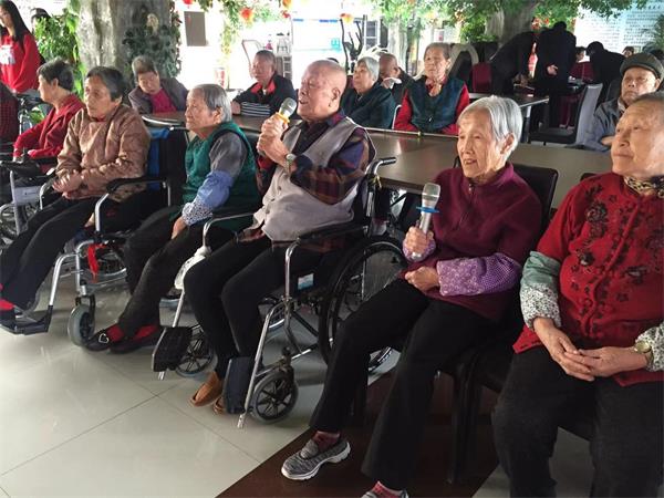 大学生为老人唱歌