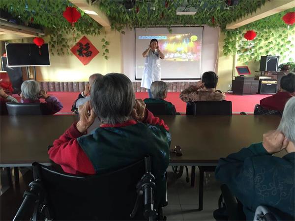 大连杏林老年公寓秉承"奉若父母,如同亲生”的服务理念,追求“关注健康,维护健康”的宗旨,为老人提供爱心、耐心、热心、细心、贴心、责任心的六心服务,满足老人的一切需要,提高老人的业余生活质量,让老人们在大连杏林老年公寓住的开心,生活的更充实,养老院为老人们准备的诸多娱乐项目。如:象棋、乒乓球、台球、麻将、报刊、点歌机、书画室等等,累了还有按摩椅按摩,吊篮坐着休息。每天还有专人负责为老人放歌点歌,陪老人一起唱歌,跳舞,做手操,让老人开心的度过生活的每一天。今天还有大连大学医学院的学生来慰问老人,为老人唱歌,给老人带来好吃的。