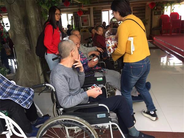 给老人分好吃的