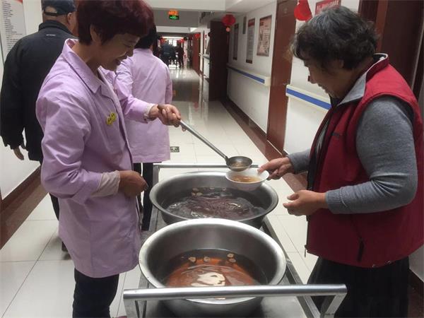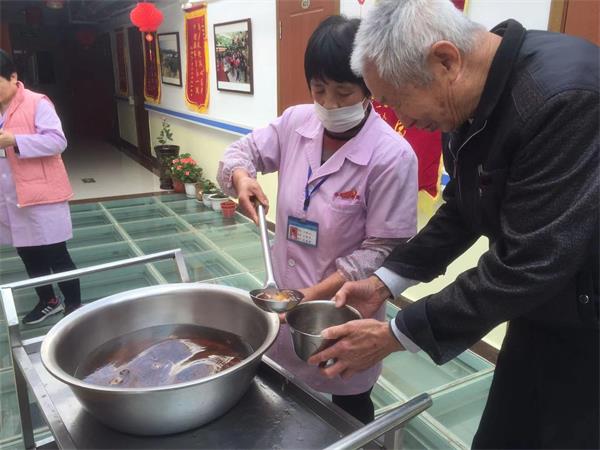 最近气候突然变凉,昼夜温差大,感冒频发。大连养老院杏林老年公寓早上都给老人熬制红糖大枣枸杞姜汤,给老人御寒,防止感冒。姜药性辛温,能发汗解表、祛风散寒,作用缓和,配上红糖大枣枸杞熬成姜汤,喝上一碗,有祛寒邪之疗效,加强老人的自身防护,防止感冒发生。老人们喝着姜汤即暖心又开心。