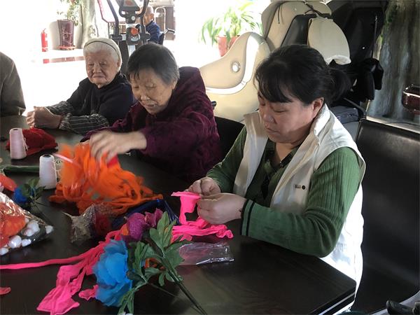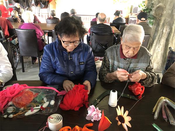 根据老人的才艺和需求,大连杏林老年公寓为老人成立了手工纸花插花班,由养老院出资购买材料,由养老院的老人张妈妈指导授课,教老人们如何制作纸花。