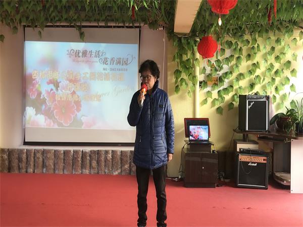 首先由我们的张老师讲话,为老人们简单的介绍了纸花的制作流程,号召所有爱好者参与,增加自己的业余生活,她也将每天带领大家指导大家制作纸花。