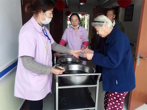护理员把熬制好的姜汤水,送到每一位老人手里,喝上一碗,有祛寒邪之疗效,加强老人的自身防护,防止感冒发生。老人们喝着姜汤即暖心又开心。 |