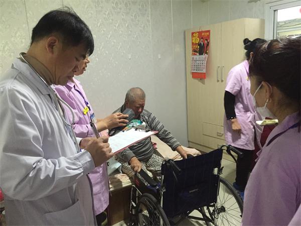 大连杏林养老院是一家医养结合的养老院,养老院有自己的医疗团队和专业的护理团队为老人服务。医疗主管宋院长会定期的带领医疗团队和护理团队进行医疗大查房。查房的主要目的就是及时了解老人的身体情况,通过护理员的汇报对身体不适的老人和卧床的老人做进一步检查,并且和家属及时沟通,及时给老人治疗,让老人早日恢复健康或及时预防老人的病情发生及加重,让老人远离病魔的折磨,健健康康的在养老院生活。我们的医疗团队和护理团队会为老人的健康保驾护航。