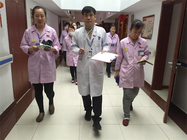 宋院长带领医疗和护理团队查房,了解老人的身体情况,制定解决方案。