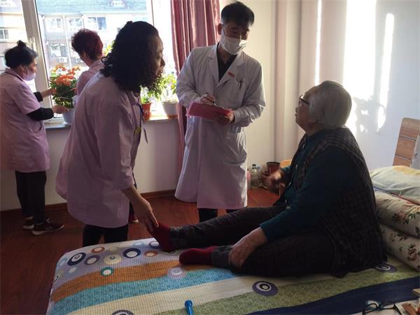 大连杏林养老院是一家医养结合的养老院,养老院有自己的医疗团队和专业的护理团队为老人服务。医疗主管宋院长会定期的带领医疗团队和护理团队进行医疗大查房。查房的主要目的就是及时了解老人的身体情况,通过护理员的汇报对身体不适的老人和卧床的老人做进一步检查,并且和家属及时沟通,及时给老人治疗,让老人早日恢复健康或及时预防老人的病情发生及加重,让老人远离病魔的折磨,健健康康的在养老院生活。我们的医疗团队和护理团队会为老人的健康保驾护航。