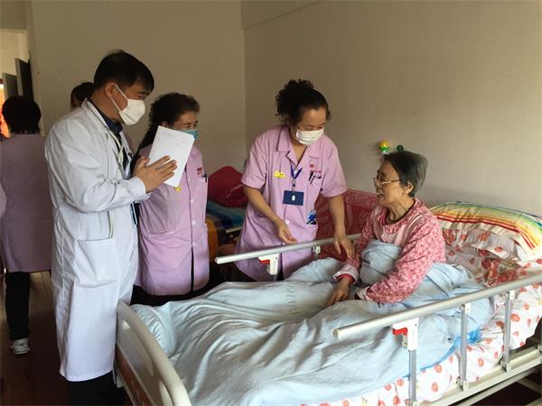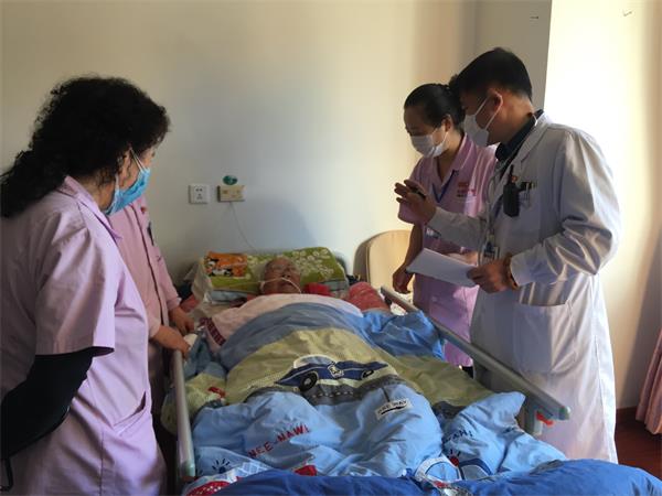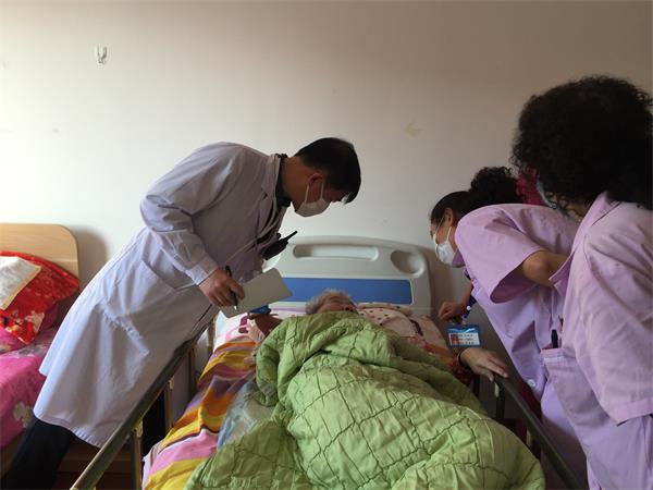 大连杏林养老院是一家医养结合的养老院,养老院有自己的医疗团队和专业的护理团队为老人服务。医疗主管宋院长会定期的带领医疗团队和护理团队进行医疗大查房。查房的主要目的就是及时了解老人的身体情况,防止老人出现疑似新型冠状病毒症状,交叉感染;另外通过护理员的汇报对身体不适的老人和卧床的老人做进一步检查,并且和家属及时沟通,及时给老人治疗,让老人早日恢复健康或及时预防老人的病情发生及加重,让老人远离病魔的折磨,健健康康的在养老院生活,让家人在这个封闭管理时期对老人的身体健康放心,我们的医疗团队和护理团队会为老人的健康保驾护航。