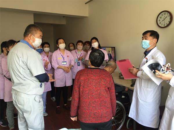 每周医疗主管宋院长都会带领护理部人员定期进行整院查房工作。宋院长带领护理部人员查房是检查护理质量、落实规章制度、提高护理质量及护理人员业务水平的重要举措。查房内容包括基础护理的落实情况、专项护理内容、心理护理、技术操作、护理制度的落实,了解老人的身体近况,也是为了更加进一步的发现存在的问题,进行下一步改善工作的实施。目前正是新型冠状病毒发病传播的隐藏期,养老院更加关注老人的身体健康,防止老人生病,出现交叉感染。