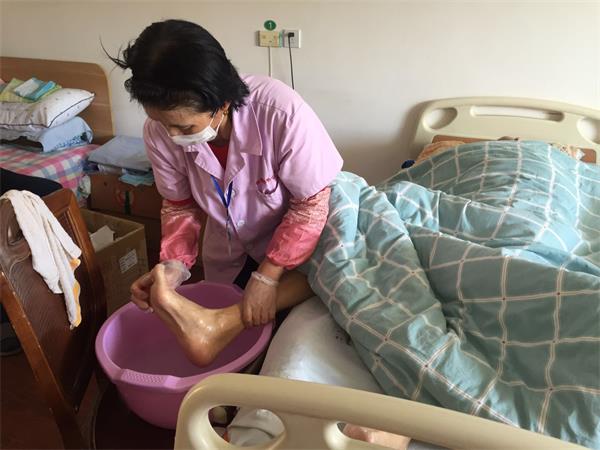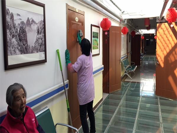 中午,老人们吃完饭都去休息了,她就利用这个时间去把老人的脏衣物给洗了,洗完了,老人也差不多都睡醒了,她就开始给老人洗澡、洗脚,同时也要给卧床的老人擦身洗脚,还要给老人收拾个人卫生,剪指甲、理发等。她总是在不停的忙碌着,按照自己的工作流程,按照院里的工作要求忙碌着,一直忙到晚上老人吃完饭,她才停下来下班休息。
