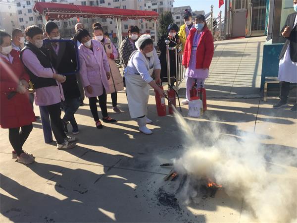 今天早上八点,养老院进行了一次消防灭火的实际演练,各部门工作人员全体参加,两位院长重点给员工们演练讲解了灭火器的使用方法,主要是为了加强员工们对灭火的正确使用,同时也让新员工掌握灭火器的使用方法。首先由我们的宋院长为大家演练灭火器的正确使用方法,根据消防专员的讲解,他把灭火器的使用总结为四个字:“提”、“拉”、“瞄”、“射”。