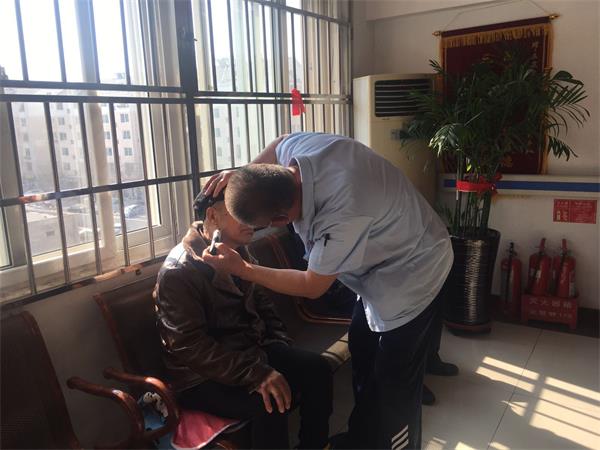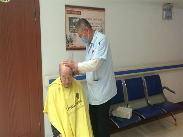 今天就为大家介绍一下眼前这位为老人理发的“张哥”。他是一个非常有感恩的人,在养老院照顾老人已经有两年了,深受家属的好评。早上7点多,当上班族、学生族在上班或上学的路上时,他已经帮助照顾的老人穿好衣服,收拾好了床铺,早早的就开始了一天的工作;当上班族结束一上午的工作回到家休息时,他正在细心的照料老人们用餐,待老人们午休后再去吃饭;夜幕降临,大家都已休息时,她们还在耐心的帮助老人擦身、睡前洗漱,一天的工作安排的满满当当。