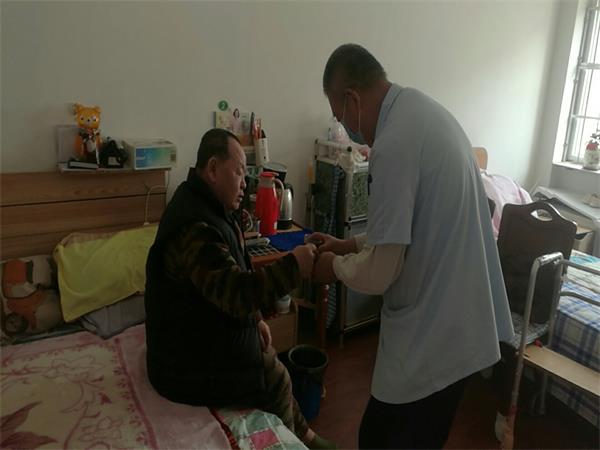 老人们随着年龄的增长,身体功能退化,带来的其中一个问题是大小便失禁,照顾他们像照顾婴儿,需要极度耐心。有的老人会在夜间大小便,有时会粘在身体和被子、床单上,此时他就需要为老人将粪便、尿液清洗干净,并且将干净的床单被套铺好。部分老人腿脚不便,大小便仍需要他去帮助。每天下午还要给老人洗澡、洗脚,保证老人的个人卫生。就这样一天不停的忙碌着,照顾好老人。