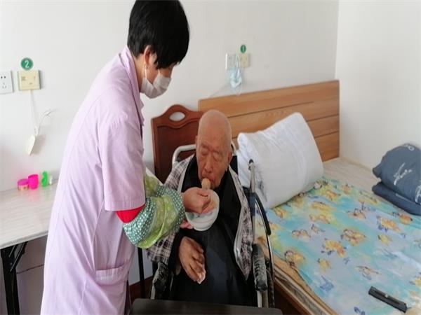 护理员给老人喂饭
