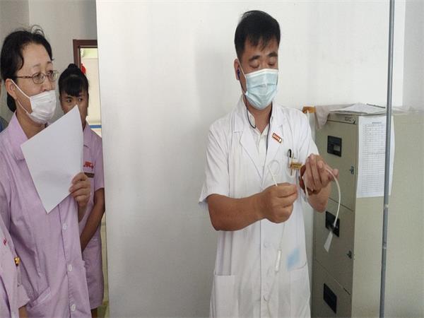 现在入住养老院的老人带导尿管的老人也很多,这就需要对老人的膀胱进行定期冲洗,防止感染。今天我们的医疗院长就为我们的护理团队进行膀胱冲洗培训。 膀胱冲洗是利用导尿管,将溶液灌入到膀胱内,再藉用虹吸原理将灌入的液体引流出来的方法,是临床护理中用到的护理操作。膀胱冲洗的操作流程:(1)进行核对,做好准备;(2)洗手,戴口罩;(3)将膀胱冲洗液悬挂在输液架上,将冲洗管与冲洗液连接,Y形管一头连接冲洗管、另外两头分别连接导尿管和尿袋。连接前对各个连接部进行消毒;(4)打开冲洗管,夹闭尿袋,根据医嘱调节冲洗速度;(5)夹闭冲洗管,打开尿袋,排出冲洗液。如此反复进行;(6)在持续冲洗过程中,观察患者的反应及冲洗液的量及颜色。评估冲洗液入量和出量,膀胱有无憋胀感;(7)冲洗完毕,取下冲洗管,消毒导尿管口接尿袋,妥善固定,位置低于膀胱,以利引流尿液;(8)协助患者取舒适卧位。