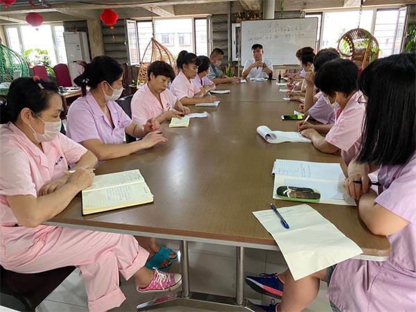 今天上午8点,由宋院长为我们护理人员进去第二十七期护理专业知识培训。这次培训的主要内容就是——打鼻饲和压疮等相关知识。护理人员齐聚一堂,认真学习,做好笔记,记录好重点知识,用这些知识去武装自己,去服务于老人。