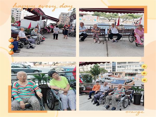 分批分流的将不能完全自理的老人带到室外散心,呼吸新鲜的空气