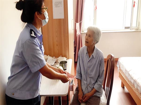 2020年9月11日,大连开发区公安局哈尔滨里派出所民警来到他们辖区的杏林老年公寓,看望孤寡老人,为老人送上慰问金和美好的祝福。