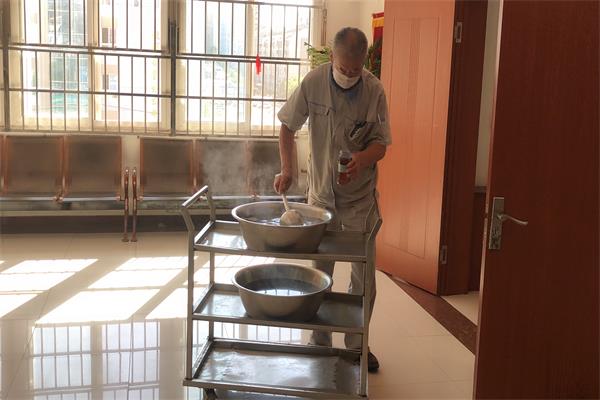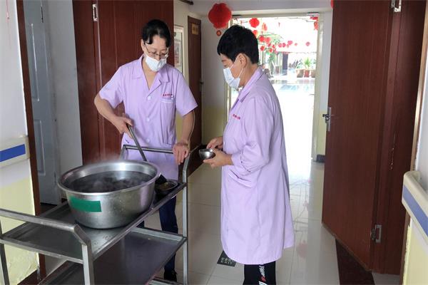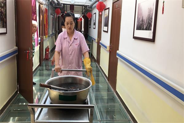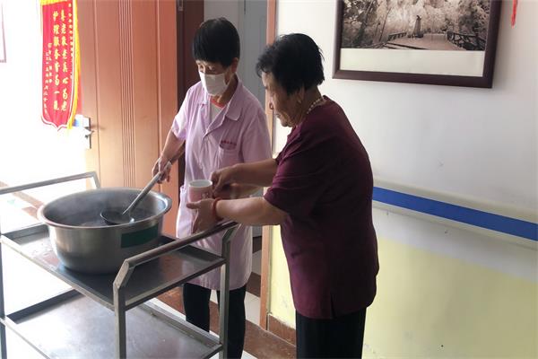 护理员各自负责自己的老人,都让老人能喝上姜汤,增强免疫力