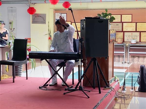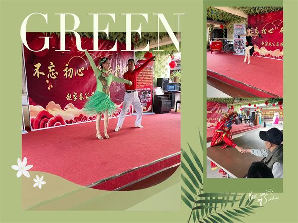 今天已经是赵家班第四次来到杏林老年公寓义演了,也是最受老人喜欢的团队。他精心策划、组织、安排,布置灯光、音响、舞台等,为老人准备了精彩的节目,有歌曲、舞蹈、变脸、魔术、乐器演奏等等。演出在下午一点半正式开始,在一首女生独唱《幸福中国一起走》拉开了演出的序幕,紧接着一段段的精彩演出陆续登场,各种才艺展出,歌声嘹亮,舞姿优美,乐器声优美动听,魔术、变脸精彩展现,表演者最小的才14岁,最大的已经77岁了,他们都把精彩的一面展现给我们,老人们看的是津津乐道,掌声、笑声、叫好声不断,总之,演出很精彩,老人们很开心。