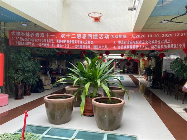 大连杏林老年公寓为了感谢近些年社会各界人士及家属对养老院工作的支持和理解,同时也为了迎接“双十一”、“双十二”,从2020年10月10日-2020年12月30日,特开展感恩回馈活动:1、更好的提高杏林养老生活品质,用超值的服务服务于老人及社会;2、提高伙食品味标准及文化娱乐生活档次;3、一次性缴费一年,赠送一个月;一次性缴费半年,赠送半个月;4、养员家属推荐新人入住,所在养员免费赠送一个月。