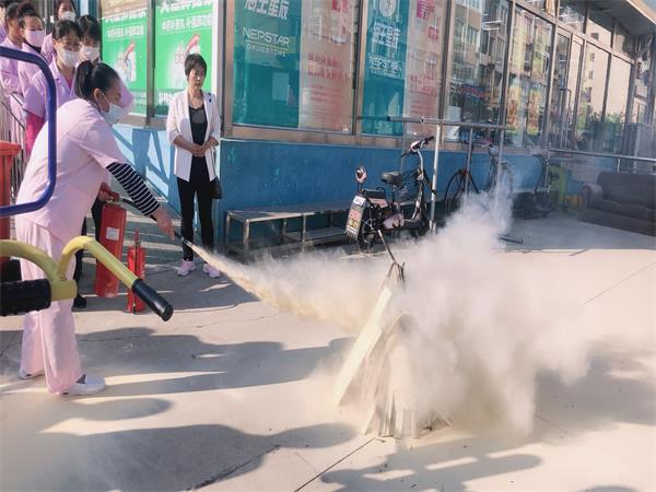 今天早上八点,养老院进行了一次消防灭火的实际演练,各部门工作人员全体参加,两位院长重点给员工们演练讲解了灭火器的使用方法,主要是为了加强员工们对灭火的正确使用,同时也让新员工掌握灭火器的使用方法。首先由我们的郝院长为大家演练灭火器的正确使用方法,我们曾经根据消防专员的讲解,把灭火器的使用总结为四个字:“提”、“拉”、“瞄”、“射”。