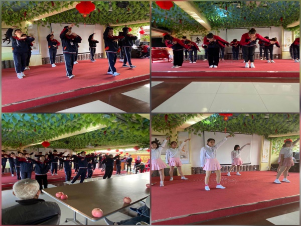 师生们带来了水果,给老人们分发之后,开始了丰富多彩的表演