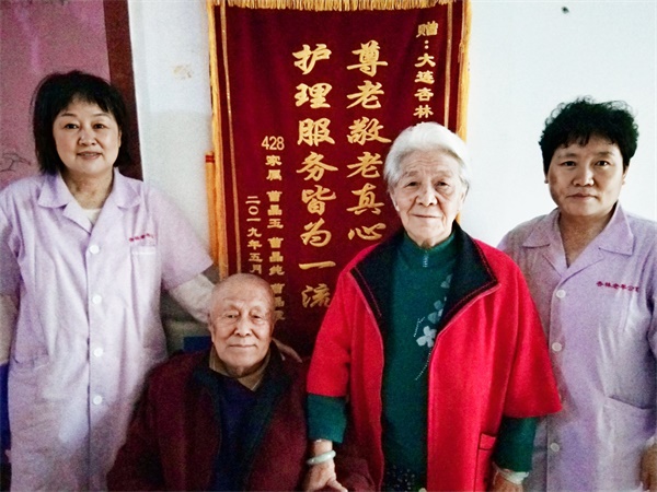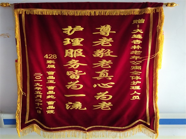 为了表达对“小郭”的感谢,陈妈妈和曹爸爸给她送了一面锦旗,二老本来打算在锦旗上只写“小郭”一人的名字,但询问“小郭”的意见时,她说工作是大家一起做的,功劳也是大家的。最终,锦旗写上了赠予杏林老年公寓全体护理人员,这件事儿让陈妈妈直到现在都很遗憾。