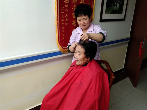 除了“小郭”之外,还有一位护理员王丽叶负责照顾陈妈妈和曹爸爸,老两口亲切地称呼她“大王”。“大王”来得晚一些,是“小郭”带着她熟悉工作的,两人也算是一对师徒。陈妈妈说,果然有好师父就会有好徒弟,这对师徒将老人们照顾得很好。“大王”是个热心肠的人,还从家里拿来水果、饼干给老人。“大王”说,上一天班就要认真地做一天的工作,不能对不起自己拿的工资。她因为工作伤到了腰时也不请假,为的是不给领导添麻烦。“大王”刚开始照顾曹爸爸时,看着老人身体不好,她也跟着难受。现在曹爸爸经过护理身体好了起来,她也跟着高兴。