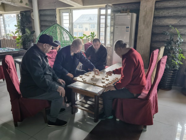 老年人的爱好多种多样,杏林老年公寓为满足老人们的各种需求,为老人们准备了多种文化娱乐设施。在这里,台球桌、投篮机、麻将桌、象棋盘等一应俱全,老人们转一圈就能享受各种休闲方式。爱好书法的老人可以坐到桌前,练练字、静静心。爱活动的老人可以相约来到投篮机前,一展身手,简单的动作就能锻炼锻炼手臂。喜欢下象棋的老人常常聚到一起,杀上一盘,老人们玩得很是投入,赢的人兴高采烈,输的人憋着一股劲儿总想再赢回来。下象棋的人着迷,观看的人也沉浸其中,象棋桌前总是围着一圈老爸爸,一个个紧皱眉头,思索着棋局的发展。在杏林老年公寓,每天还能凑上两桌麻将,三楼一桌,四楼一桌,老人们自发结伴,聚到一起比试牌技。大家兴致颇浓,总是早早地就来到牌桌前,遇到老伙伴迟到的情况还会到对方房间去催上一催。