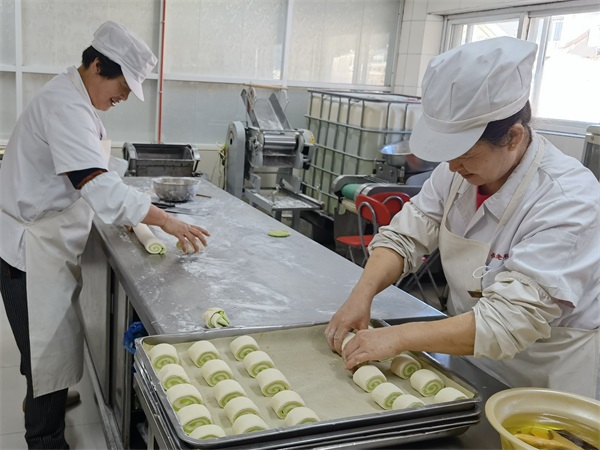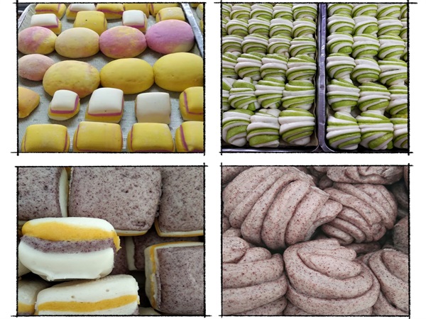 杏林老年公寓食堂的工作人员将火龙果、菠菜、南瓜、黑米一类食材榨汁或研磨后加入面粉中调制,揉成颜色各异的面团,接着把各种颜色的面团擀成面饼,再将不同颜色的面饼组合在一起,制成颜色鲜艳明亮的花卷、馒头,好看更好吃,咬上一口,松软香甜。不同于普通馒头、花卷的单调,别有一番风味。面食中加入的食材不仅为其增添了漂亮的颜色,还增加了多种营养元素,美味又健康。与添加色素的面食相比,这样制作出的面食更加原汁原味,颜色自然,让人食欲大增。