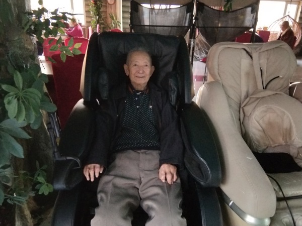 修爸爸今年八十多岁,近一米八的个子,十分开朗健谈,见到人会大声地打招呼,脸上总是挂着笑容,和蔼可亲。