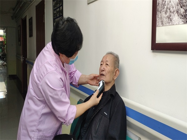 护理员对老人们的照顾具体到生活中衣食住行的方方面面,从每天早饭前给老人送上一杯热水开始,一日三餐准时送到老人手上,打扫房间,定期给老人修剪头发、指甲、胡须,护理员还会扶着腿脚不灵活的老人进行恢复锻炼,也会推着坐轮椅的老人到房间外转一转、晒晒太阳……